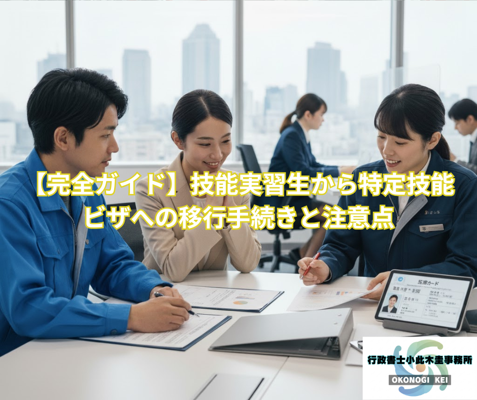 技能実習で身につけた技術を活かし、日本で引き続き働きたいと考える外国人にとって、「特定技能ビザ」への移行は大きなチャンスです。しかし、在留資格変更の手続きは複雑で、企業側にも多くの準備が求められます。本記事では、行政書士の視点から、技能... -
